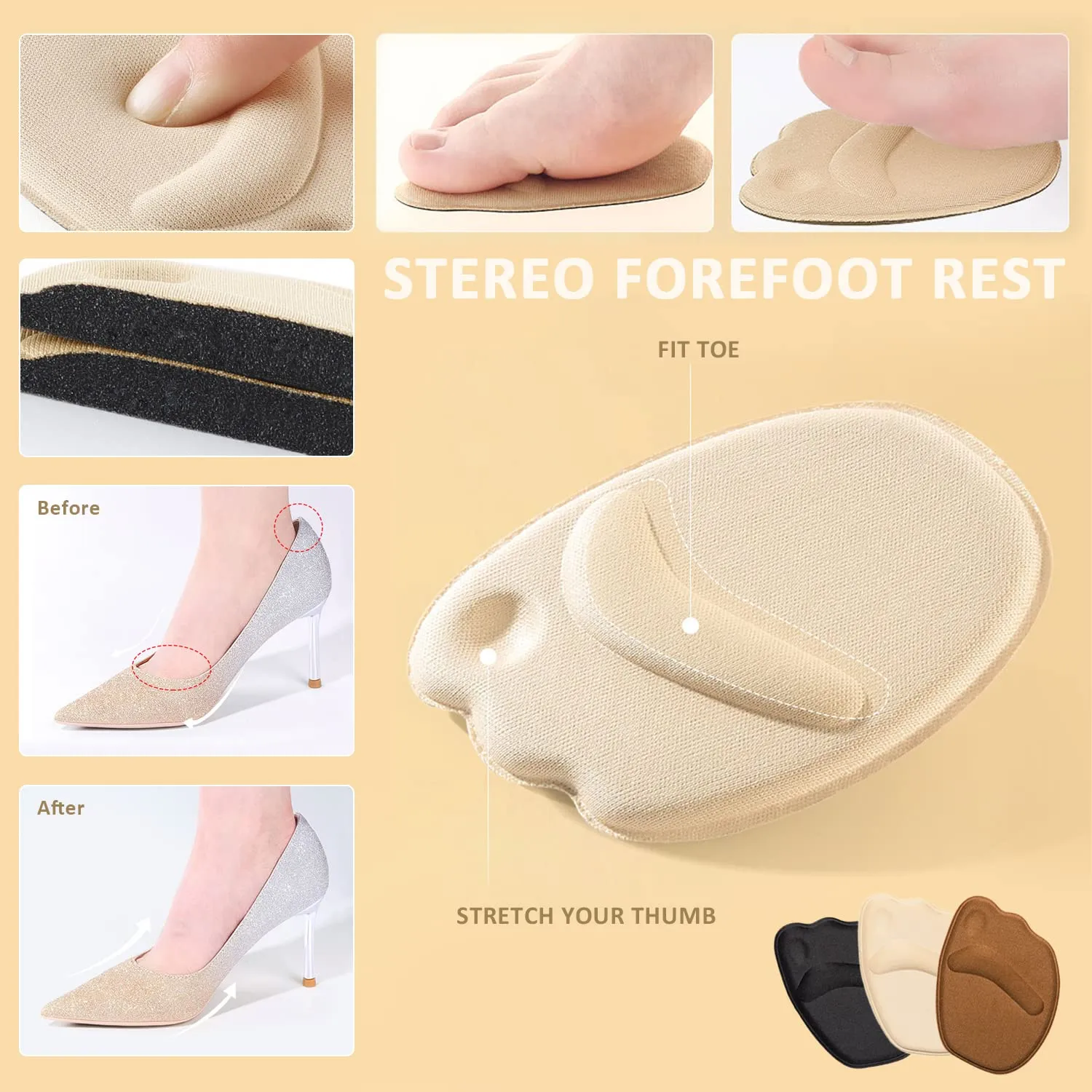 - Good AdhesionOur heel pad and forefoot pad have strong adhesive force, which is firmly fixed and not easy to fall off. When you don't need to use it, you can re-stick the heel sticker, and it can be reused next time. It is soft and wear-resistant, easy to stick and easy to take, and has the functions of anti-skid, anti-wear, cushioning and decompression.