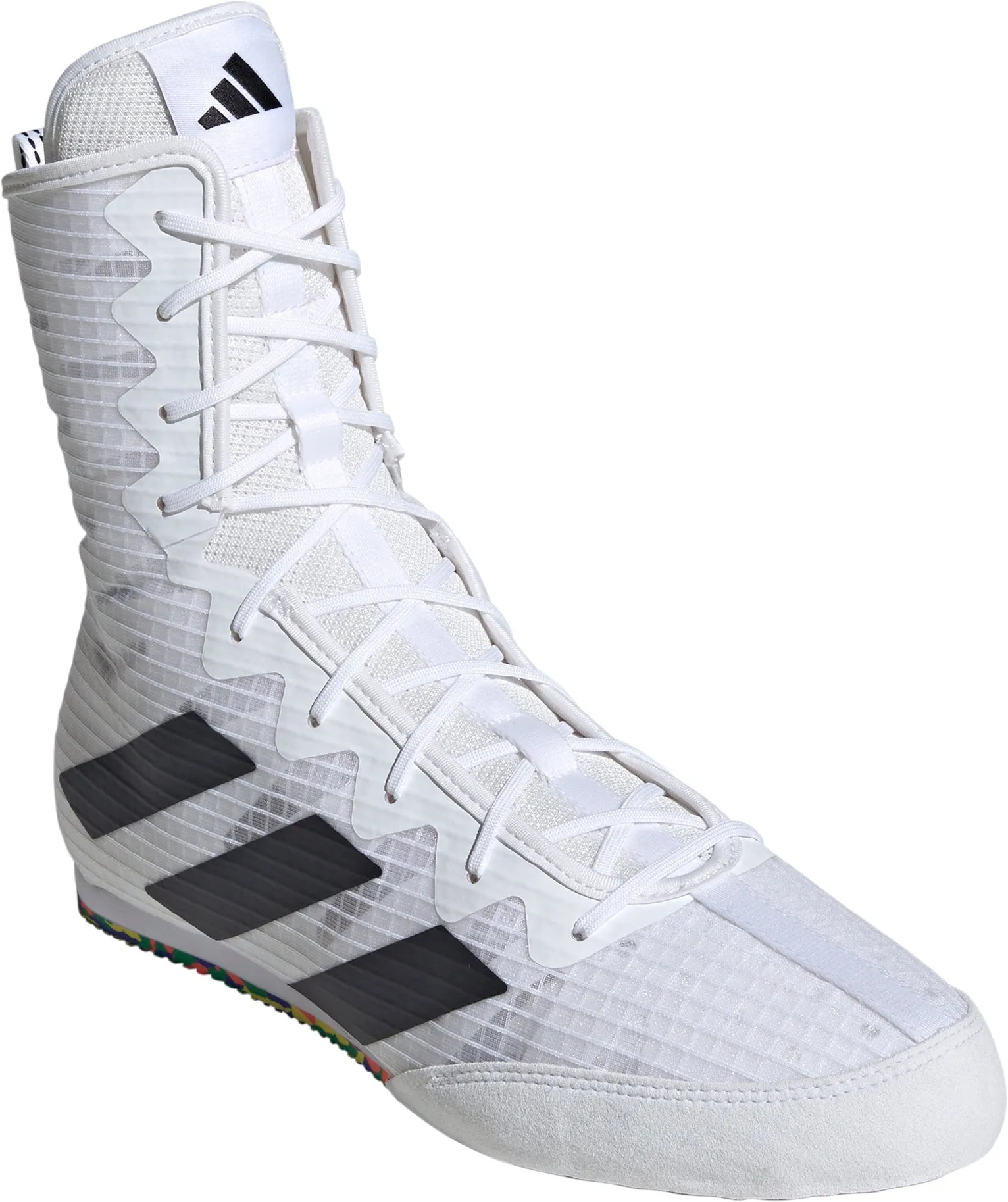 Tried and trusted. No stranger to the gym or the ring, adidas Box Hog boxing shoes keep your intensity high thanks to their breathable mesh upper and inner reinforcements. A die-cut EVA midsole wedge supports your midfoot for a stable stance. Underneath, the multidirectional outsole grips the mat for lightning-quick footwork.