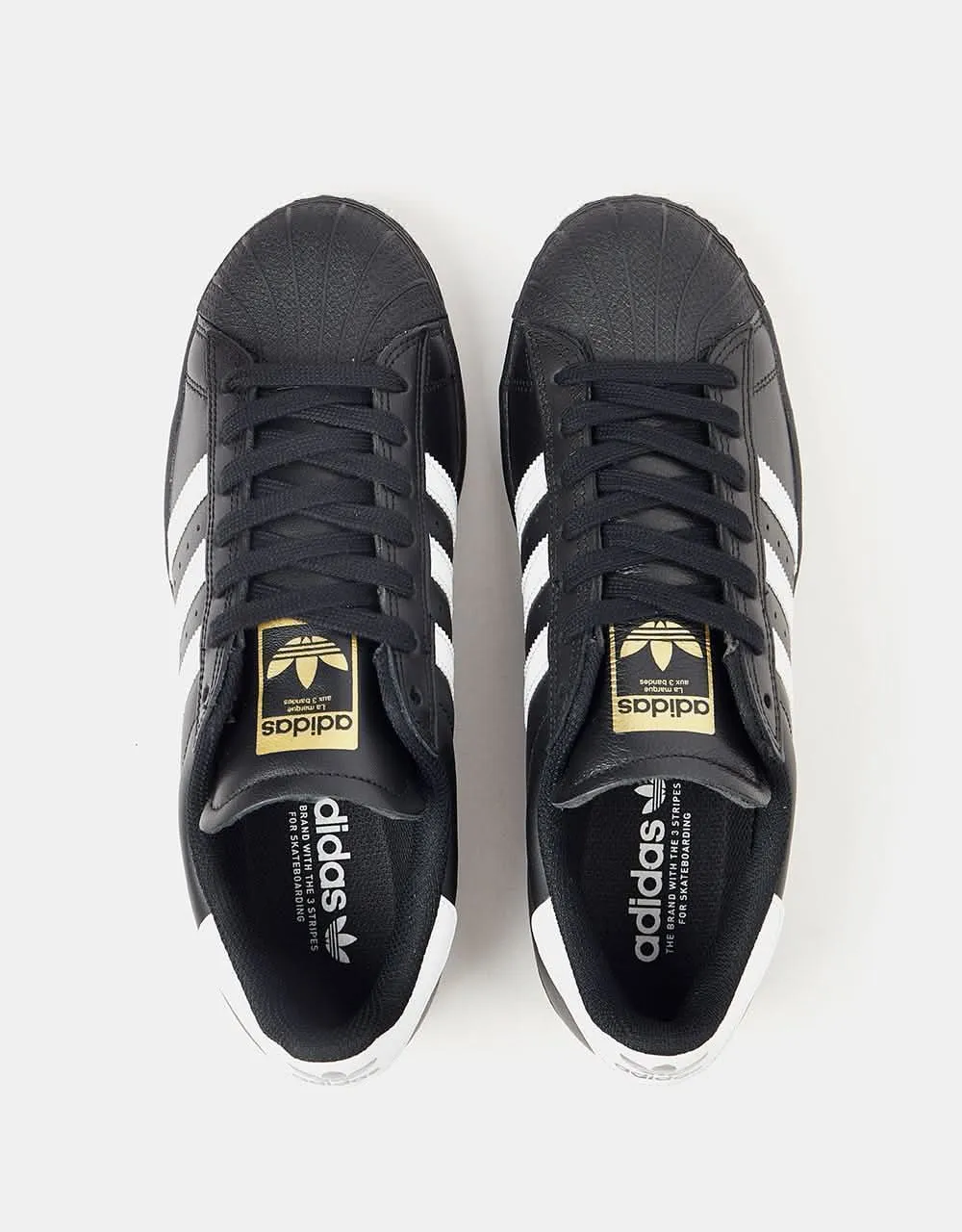 Introducing the Adidas Superstar ADV Skate Shoes in Core Black/White/White, a skate update on one of the most recognisable silhouettes ever. These come with a premium leather upper, a vulcanised rubber outsole, printed Gold tongue branding and an Adiprene moulded sockliner. Complete with the iconic rubber shell toe cap and textured tri-stripe branding down the sidewall.