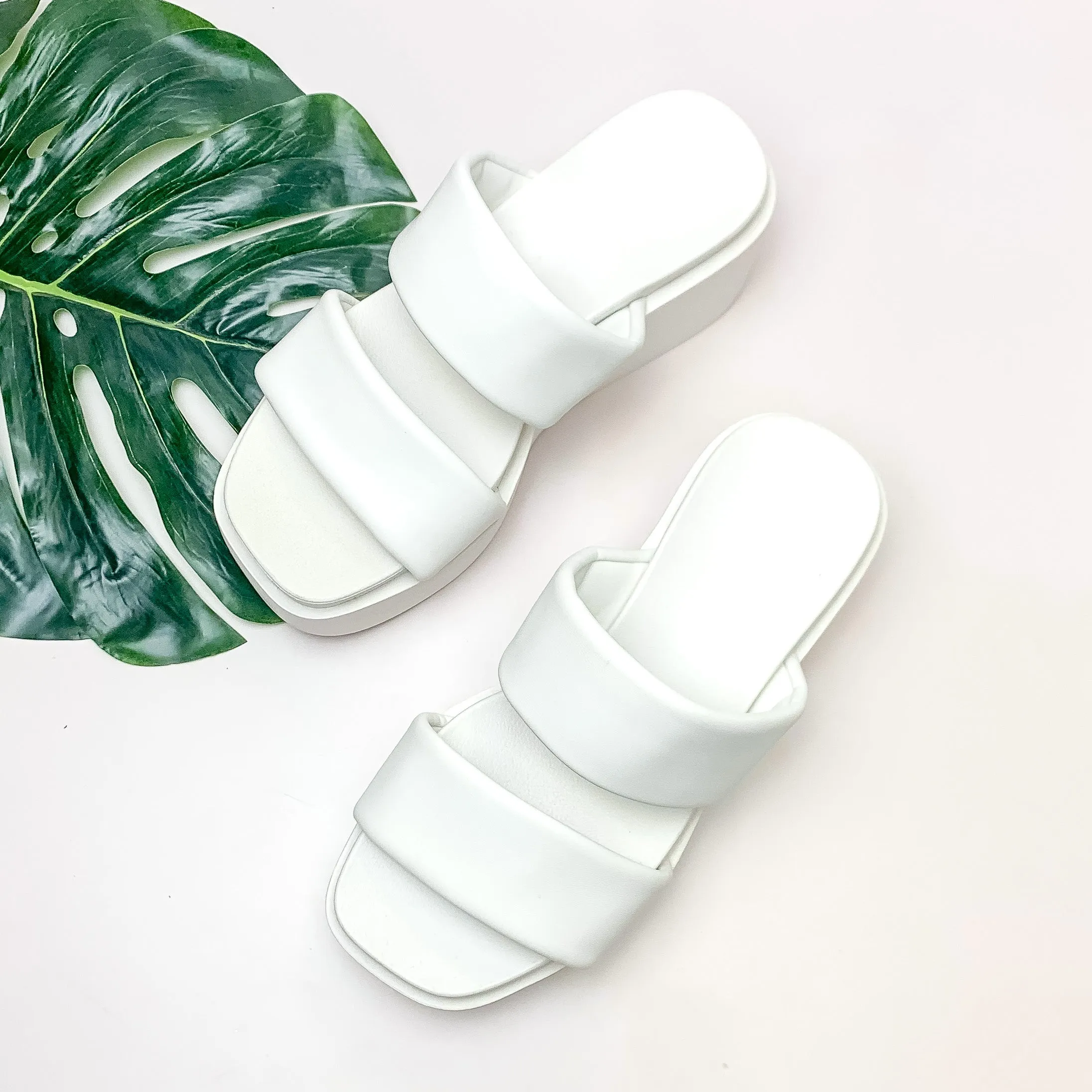 These adorable shoes have us craving a beach trip! They include two straps and a thick sole. The sole measures about 1.25 inches tall at the toe and 2.25 inches tall at the heel. Pair them with a dress or shorts and you'll be set for the season!