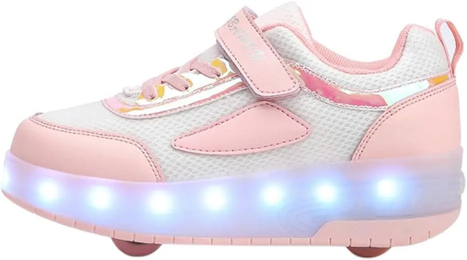 Kids LED Roller Skate Shoes with Double Wheels Rechargeable Retractable Wheels Light Up Sneakers for Christmas Birthday Gifts