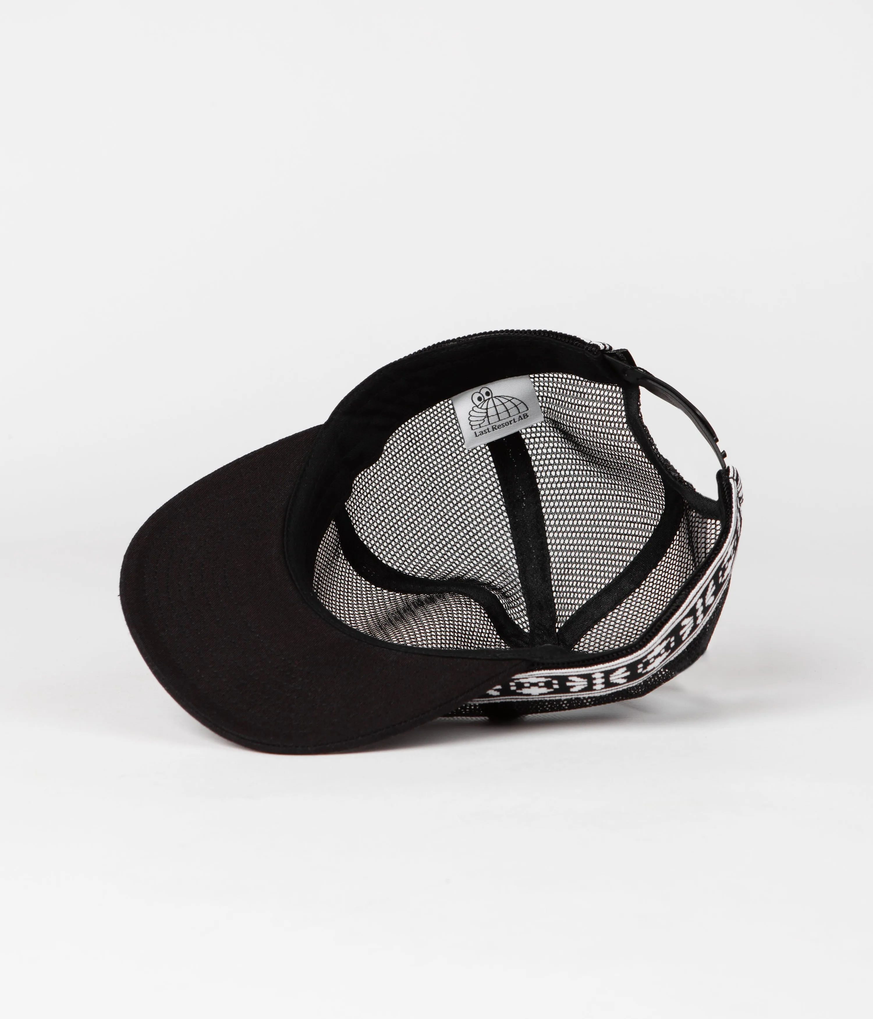 Last Resort AB Webbed Full-Mesh Cap in Black. Made from 100% nylon with a 100% cotton peak, this full-mesh Last Resort AB cap is styled to a single size fitting with an adjustable snapback fastening. Featuring a reinforced flat bill and a six panel mesh construction, this six panel Last Resort AB cap is finished in a shade of black with woven webbing tape detailing.