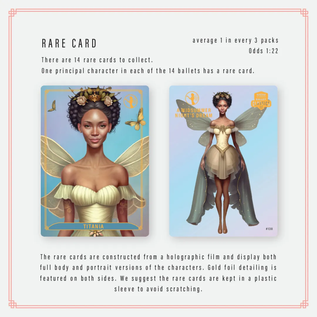 Stepping into the magical realm of fairy tale ballet stories, the Ballet Classics trading card series introduces 126 exquisitely designed characters across 14 ballets and places them in your hands.