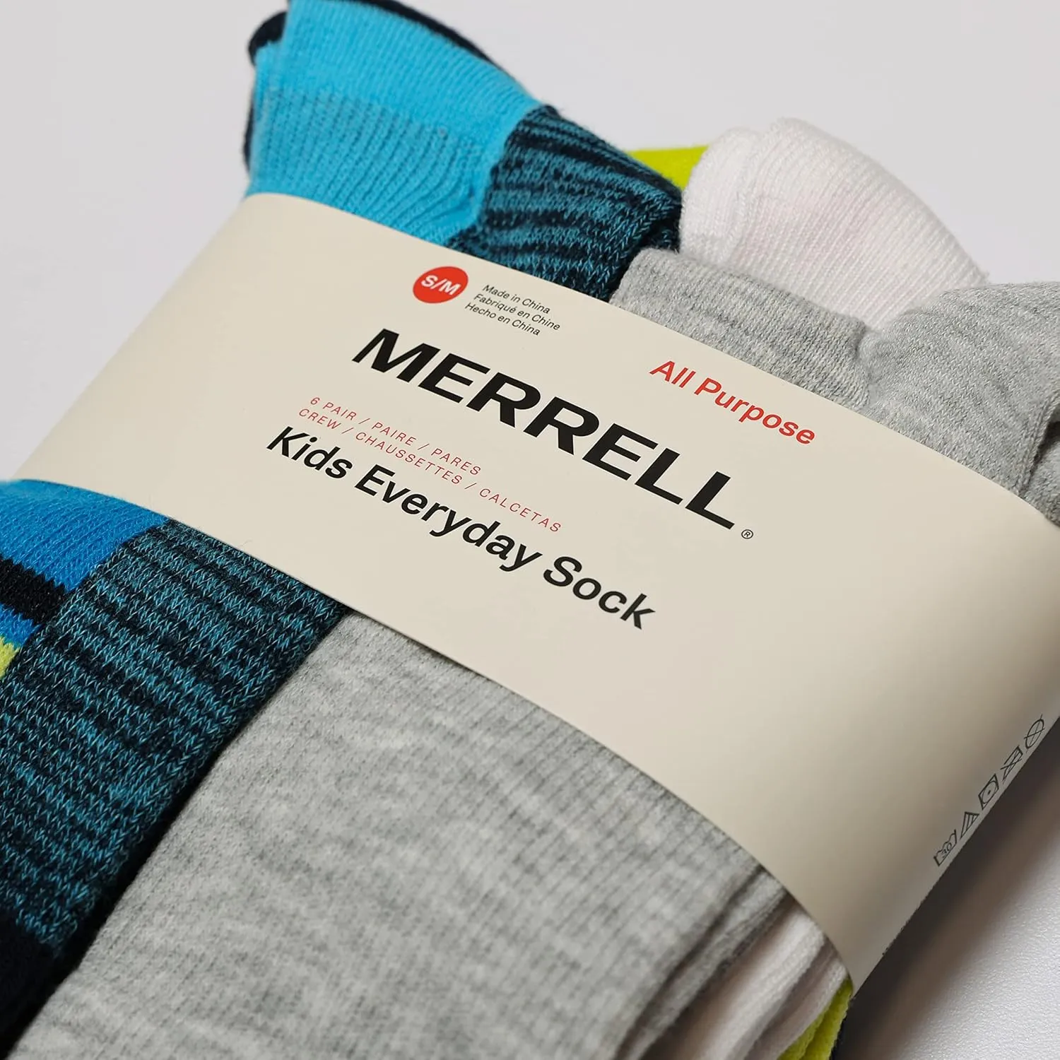 Prep them for the trails ahead in everyday Merrell socks for boys and girls designed for heel-to-toe comfort. Each pair of kids' socks has moisture management and odor control technology to feet dry and comfortable, so the last stage of the journey feels just as good as the first. With 6 pairs per pack, this style comes in a low cut and crew length and makes a wonderful gift for anyone on your list.