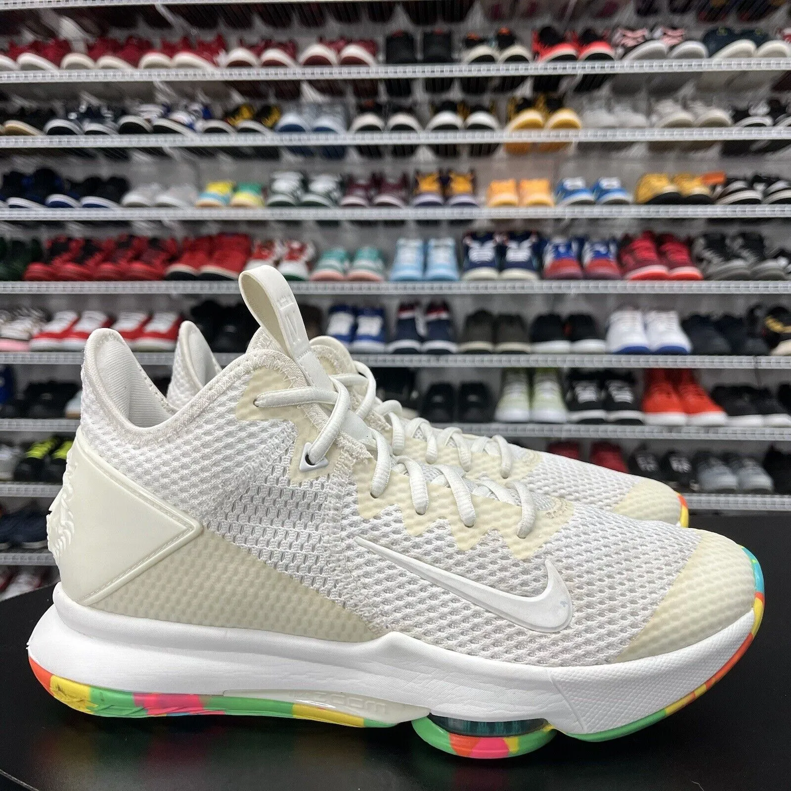 This pair of Nike leBrons are preowned and in great condition! They have no major flaws and very little wear. The shoe does not come with a box. Get your hands on these sneakers today and take your basketball game to the next level!