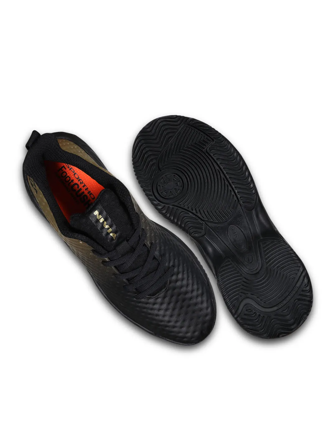 NIVIA POWERSMASH Tennis Shoes On the court, you need a variety of skills to defeat your opponent; speed, agility, and tact come from within, but stability, grip, and support come from your shoes. The POWERSMASH is a non-marking indoor court shoe made for tennis and other fast-paced court sports. Spacer mesh upper TPU film with seamless upper design. The Fusion Technology construction produces an irritation-free fit, reducing bulk, layers, and weight Two layers of high-density foam line the collar and mould to the athlete's foot to create a personalised heel fit, adding soft support and custom comfort. A moulded removable P.U (SPORTHO FOOT CUSHION) sock liner exists as an extra layer of plush, step-in comfort. Soft cushion The NR EVA inner insole provides better cushioning and comfort. Duofoam Midsole: Located in the midsole, it provides lightweight cushioning. It is 15% more responsive than standard EVA, Resilience while infusing every stride with the power required for a game. Non-marking The Multi-Directional structure and Round Sole-outsole have Multi-Directional herringbone. The partitioned curves enable better agility. The Nivia Round Sole is designed to provide all-around support for quick and smooth footwork. The round sole ensures smooth movements and the transfer of maximum energy. Toe stitching on the sole lip gives support to the toe area.