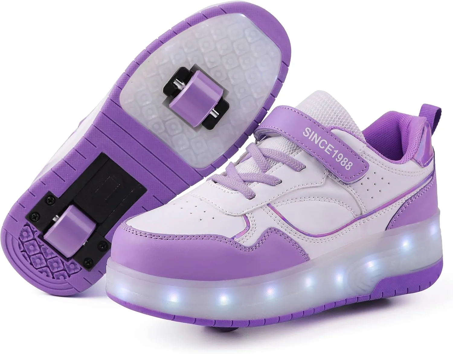 Roller Skate Shoes for Boys Girl Sneakers with Retractable Wheels-Stylish Trainers for Kids, Enhanced Safety LED Light-Up USB Rechargeable Skateboarding Perfect for Party, Birthday, Christmas
