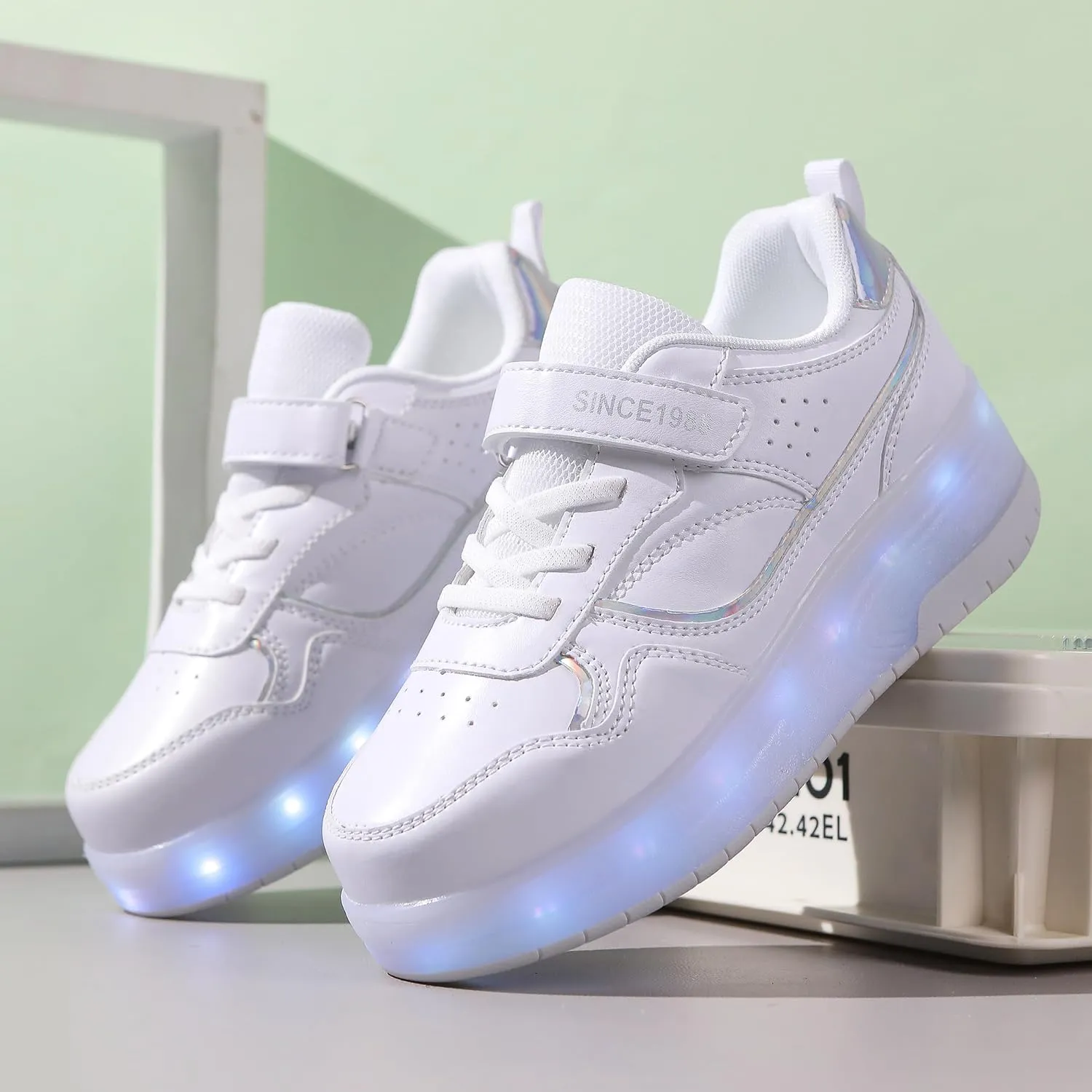 Roller Skate Shoes for Boys Girl Sneakers with Retractable Wheels-Stylish Trainers for Kids, Enhanced Safety LED Light-Up USB Rechargeable Skateboarding Perfect for Party, Birthday, Christmas