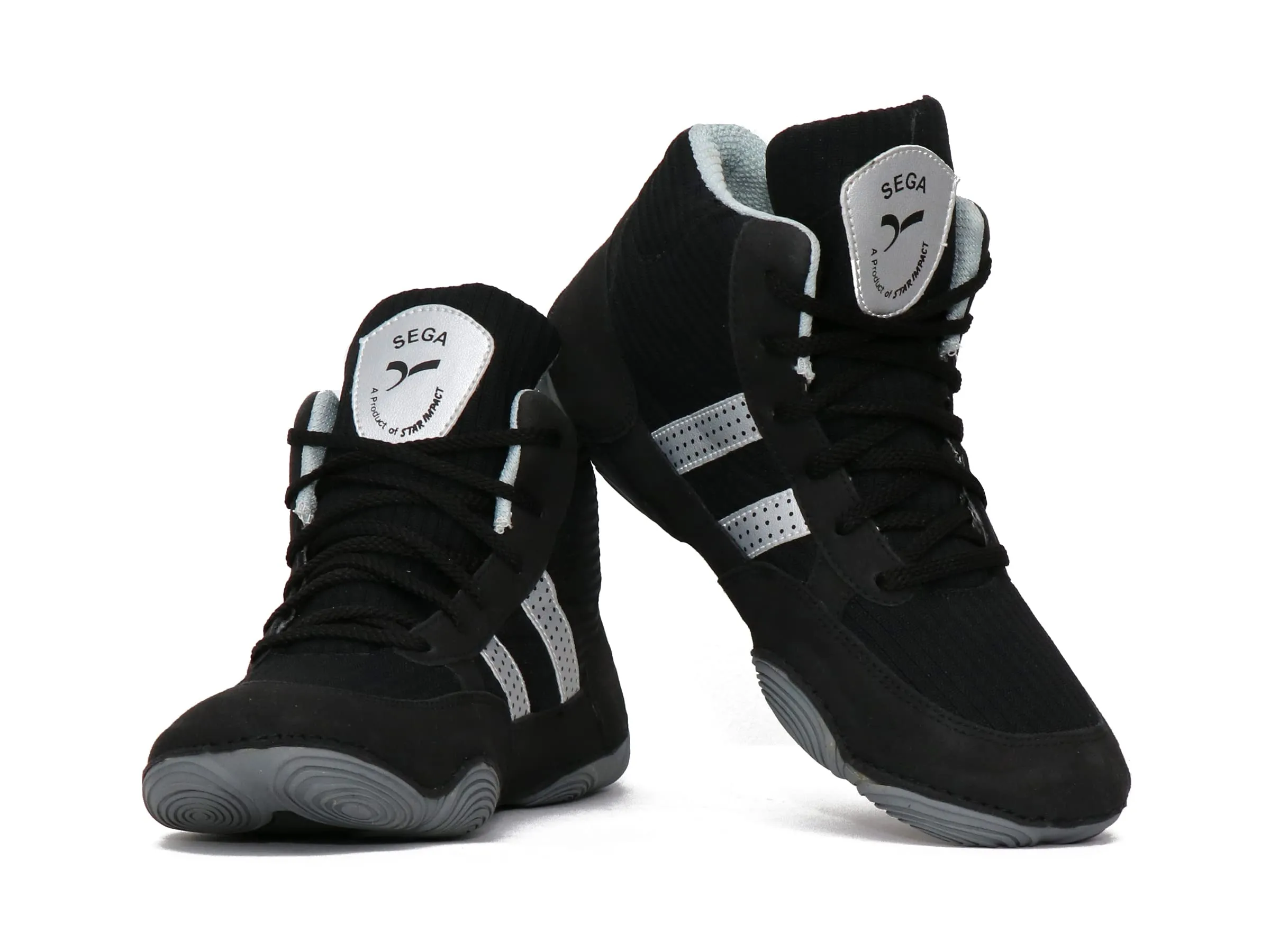 Introducing the "Ring Boxing shoes / Wrestling Shoes" by QUIVE powered by SEGA Shoes, designed to elevate your performance in the ring with unbeatable comfort and style. These wrestling shoes are crafted to meet the demands of both male and female wrestlers, providing the perfect blend of functionality and aesthetics.