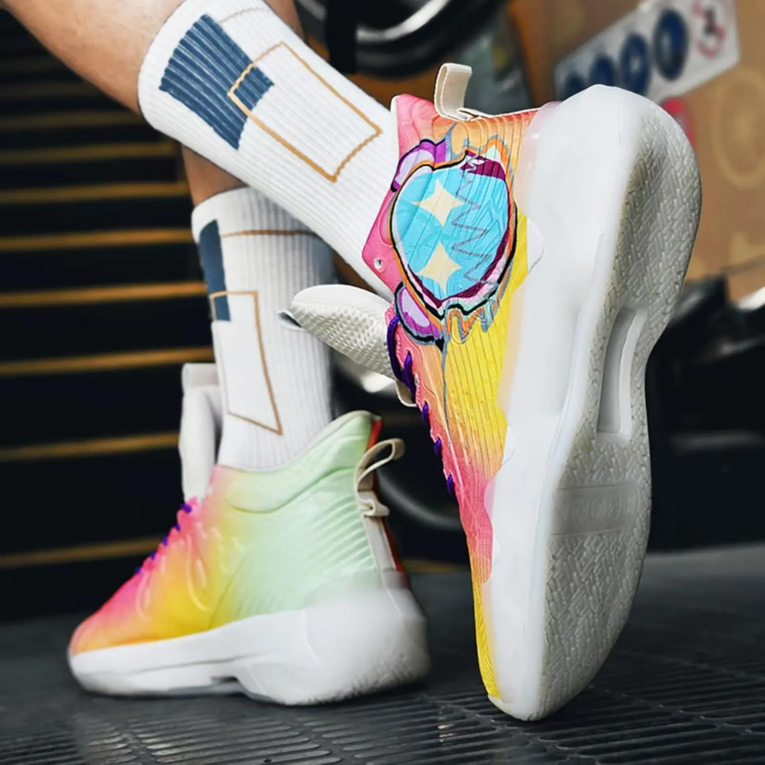 • Colorful & Luminescent Design: This Women'S Basketball Shoe Features A Unique Combination Of Luminescent And Colorful Painting Designs, Adding A Splash Of Brightness To Nighttime Sports While Showcasing Individuality During The Day. Perfectly Pairs With Various Casual Or Athletic Outfits.